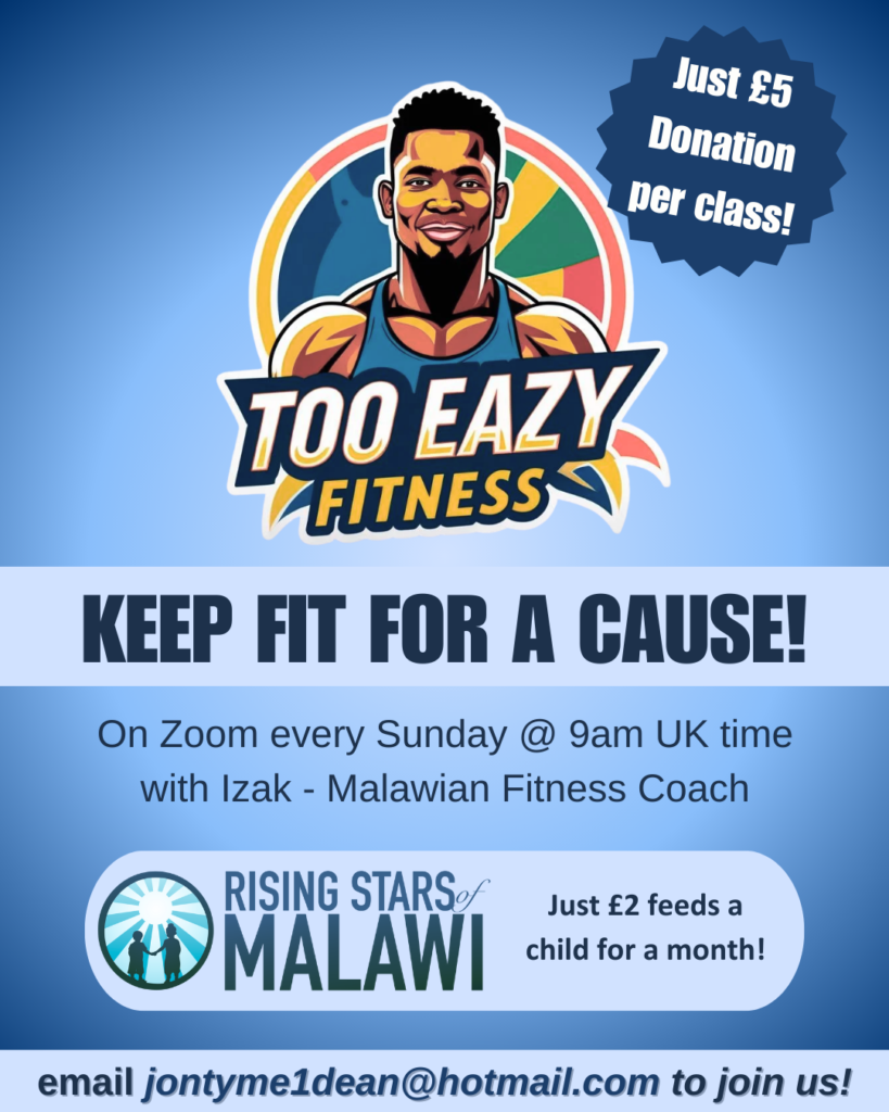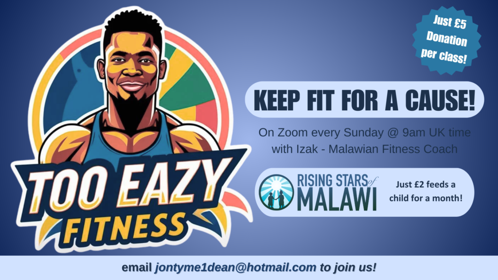 - Join our “Keep Fit for Charity” virtual fitness sessions with Malawi Instructor IZAK: TOO EAZY *** contact us for more details